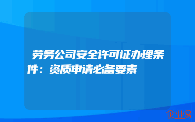- 劳务公司安全许可证办理条件:资质申请必备要素