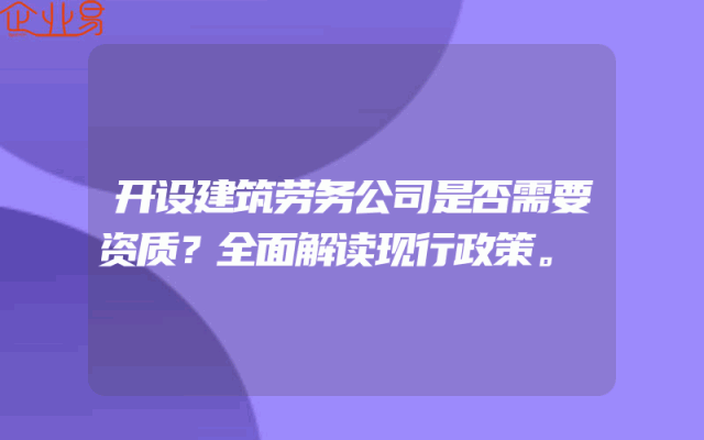 - 开设建筑劳务公司是否需要资质?全面解读现行政策。