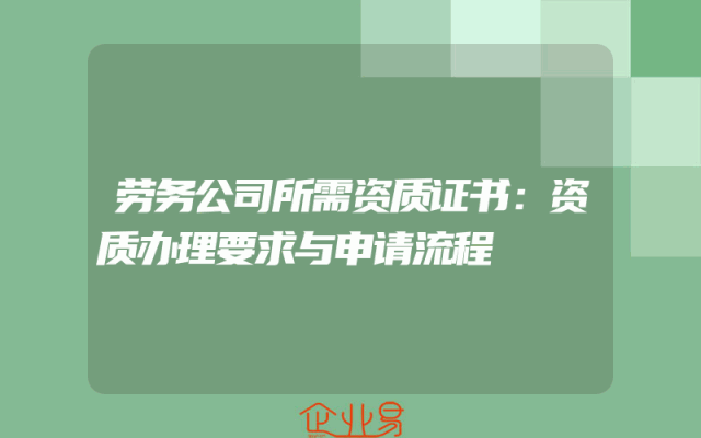- 新办劳务公司资质要求:如何获取企业资质证书?