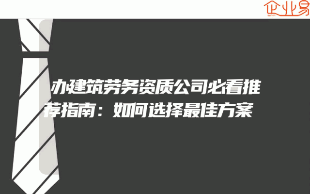 - 办建筑劳务资质公司必看推荐指南:如何选择最佳方案