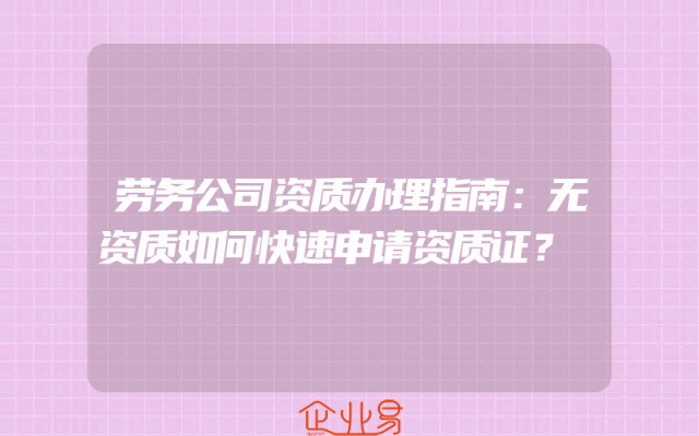 - 劳务公司资质办理指南:无资质如何快速申请资质证?