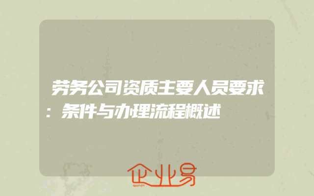 - 劳务公司资质主要人员要求:条件与办理流程概述