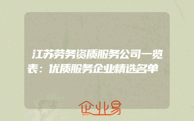 - 江苏劳务资质服务公司一览表:优质服务企业精选名单
