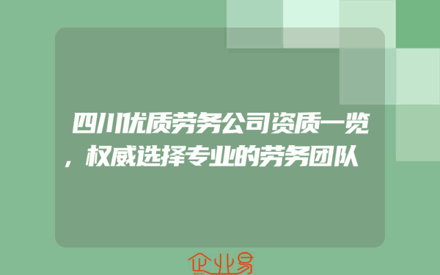 - 四川优质劳务公司资质一览:权威选择专业的劳务团队一、四川劳务公司资质概述在四川省,众多劳务公司凭借优质的服务和专业的团队赢得了良好的口碑。选择一家具有优质资质的劳务公司,对于企业和个人而言都至关重