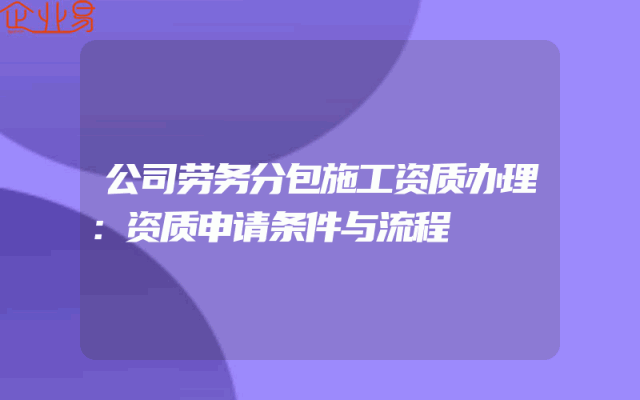 - 公司劳务分包施工资质办理:资质申请条件与流程