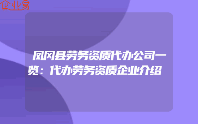 - 凤冈县劳务资质代办公司一览:代办劳务资质企业介绍