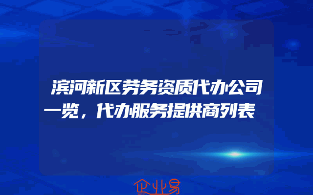 - 滨河新区劳务资质代办公司一览,代办服务提供商列表