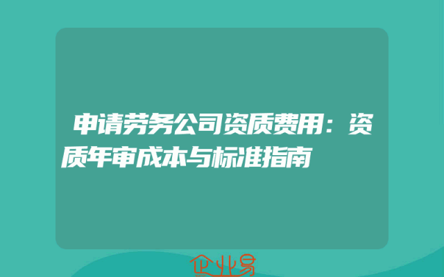 - 申请劳务公司资质费用:资质年审成本与标准指南