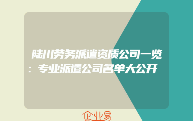- 陆川劳务派遣资质公司一览:专业派遣公司名单大公开
