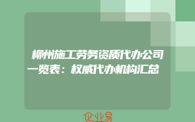- 柳州施工劳务资质代办公司一览表:权威代办机构汇总