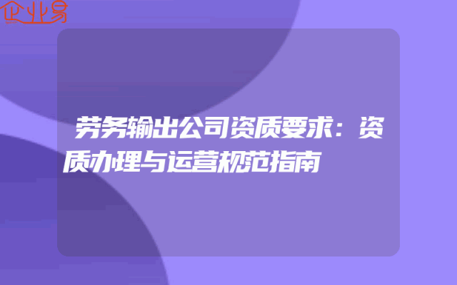 - 劳务输出公司资质要求:资质办理与运营规范指南