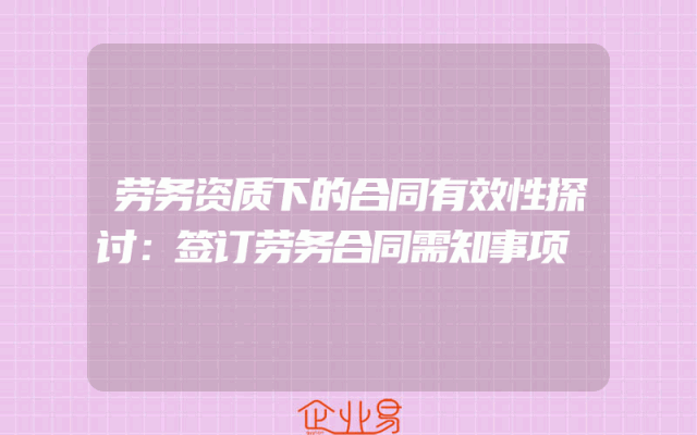 - 劳务资质下的合同有效性探讨:签订劳务合同需知事项