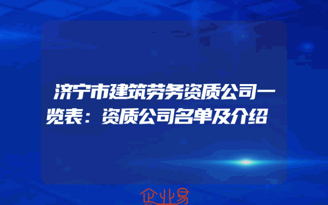 - 济宁市建筑劳务资质公司一览表:资质公司名单及介绍
