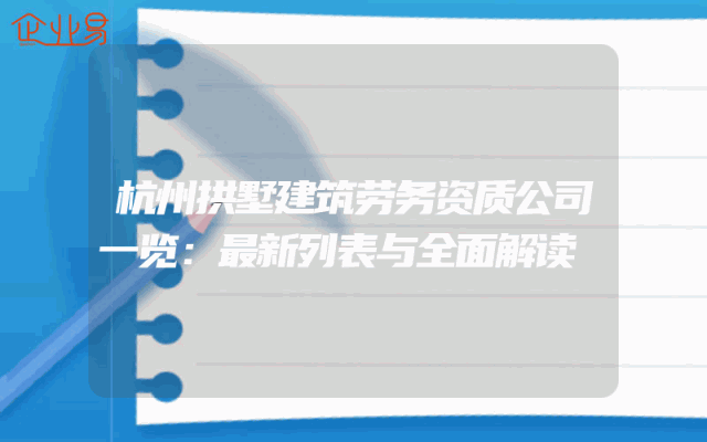 - 杭州拱墅建筑劳务资质公司一览:最新列表与全面解读