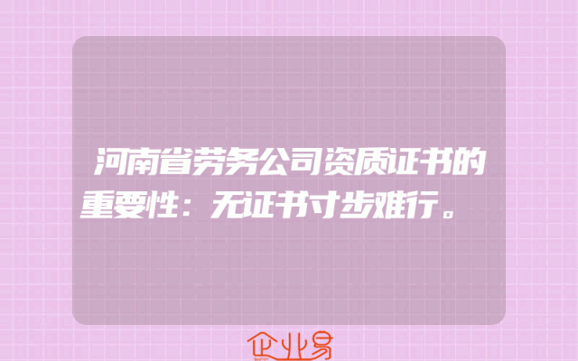 - 河南省劳务公司资质证书的重要性:无证书寸步难行。