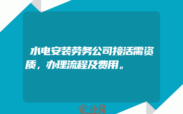 - 水电安装劳务公司接活需资质,办理流程及费用。