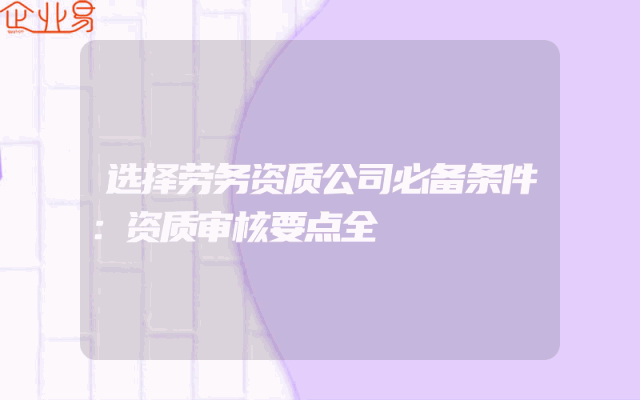 - 劳务资质公司必备条件详解:资质审核要点全解析一、劳务资质公司的重要性及其概述在当前经济全球化背景下,企业服务行业日趋成熟,各类企业资质的重要性愈加凸显。对于劳务资质公司而言,具备合法资质是其开展业务的前提和基础。这不仅体现了公司的实力和专业