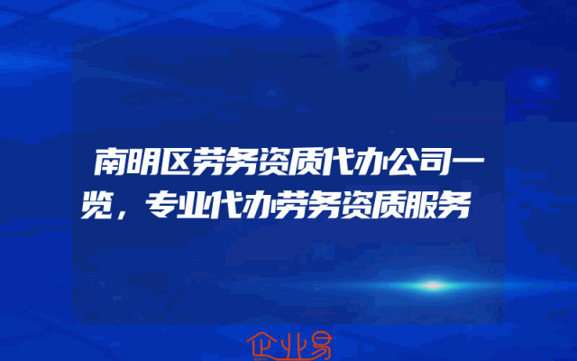 - 南明区劳务资质代办公司一览,专业代办劳务资质服务