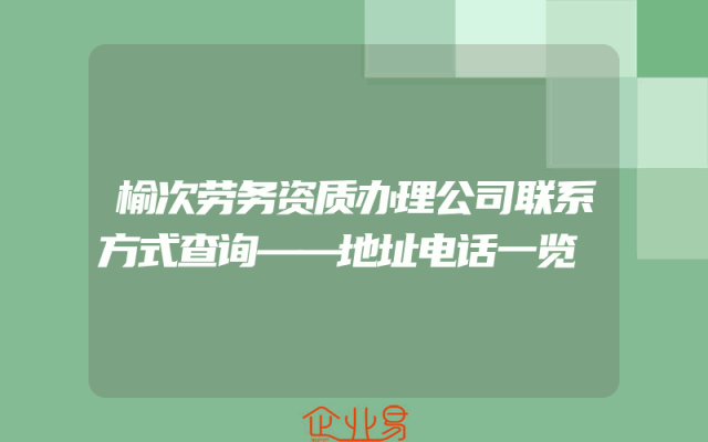 - 榆次劳务资质办理公司联系方式查询——地址电话一览