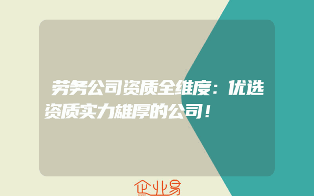 - 劳务公司资质全维度:优选资质实力雄厚的公司!