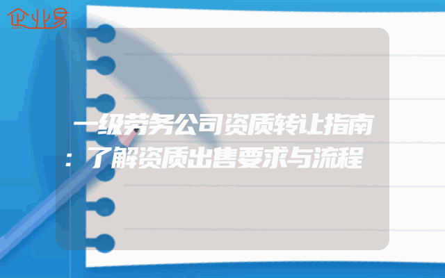 - 一级劳务公司资质转让指南:了解资质出售要求与流程