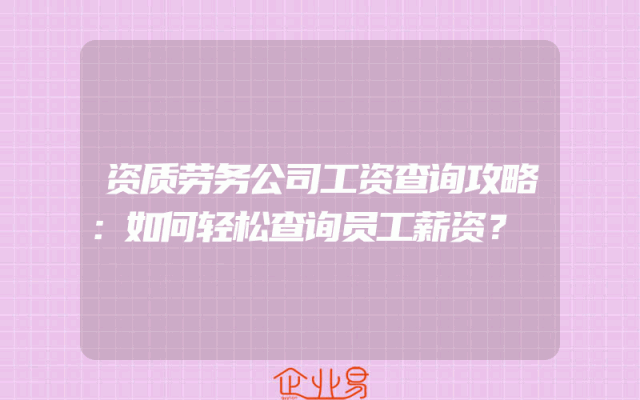 - 资质劳务公司工资查询攻略:如何轻松查询员工薪资?
