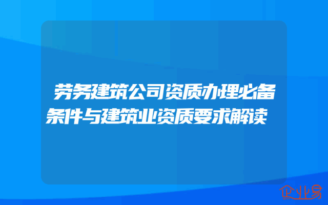 - 劳务建筑公司资质办理必备条件与建筑业资质要求解读