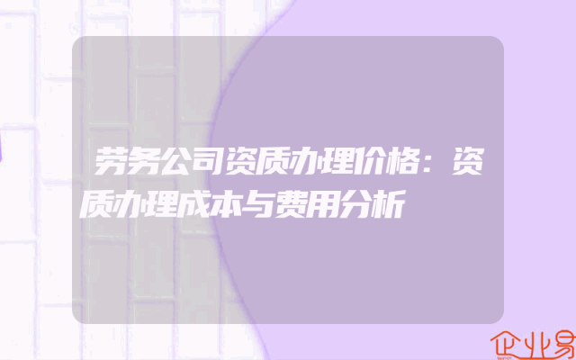 - 劳务公司资质办理价格:资质办理成本与费用分析