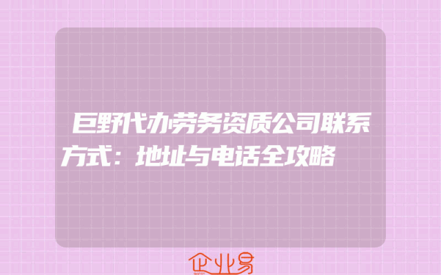 - 巨野代办劳务资质公司联系方式:地址与电话全攻略