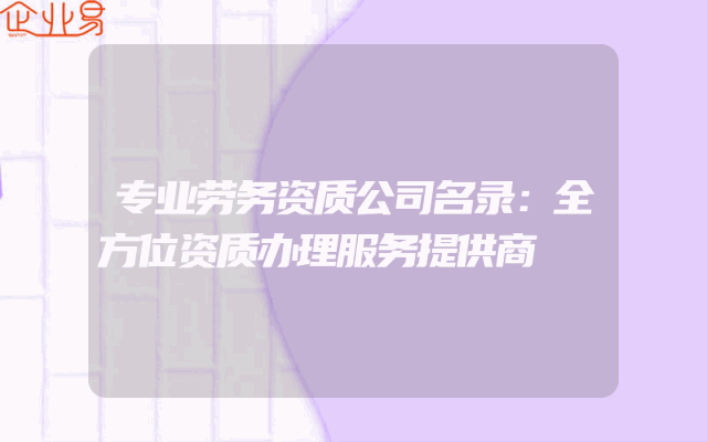 - 专业劳务资质公司名录:全方位资质办理服务提供商