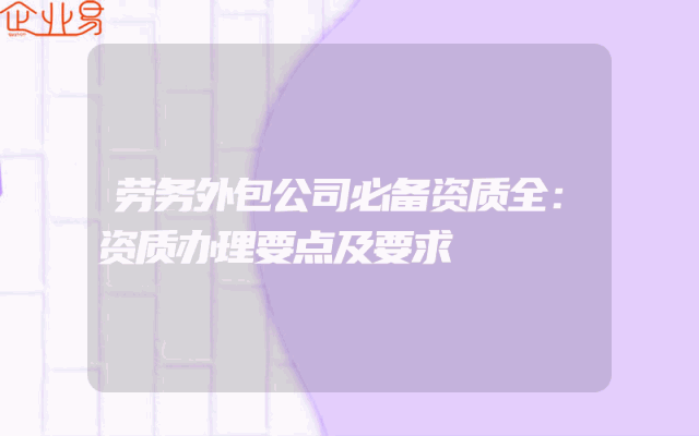 - 劳务外包公司必备资质全:资质办理要点及要求