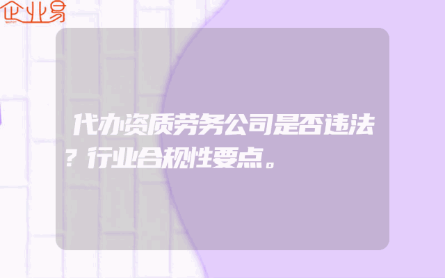 - 代办资质劳务公司是否违法?行业合规性要点。