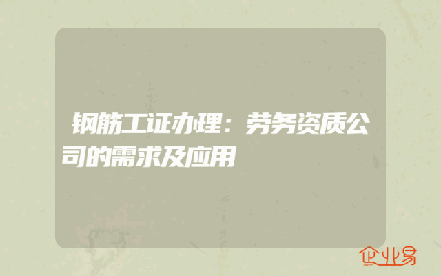 - 钢筋工证办理:劳务资质公司的需求及应用