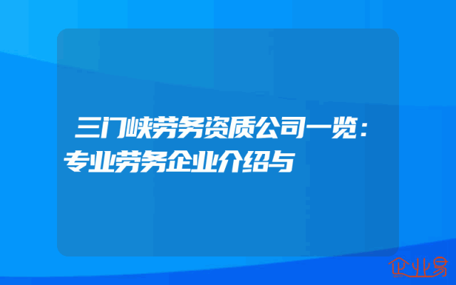 - 三门峡劳务资质公司一览:专业劳务企业介绍与