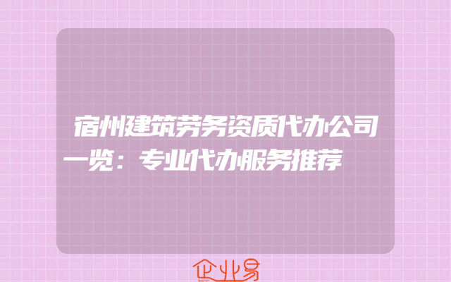 - 宿州建筑劳务资质代办公司一览:专业代办服务推荐