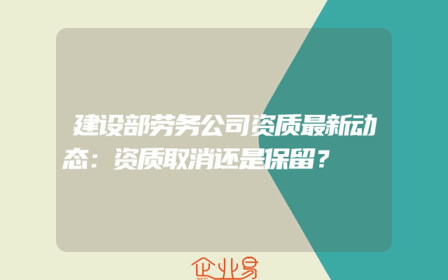 - 建设部劳务公司资质最新动态:资质取消还是保留?