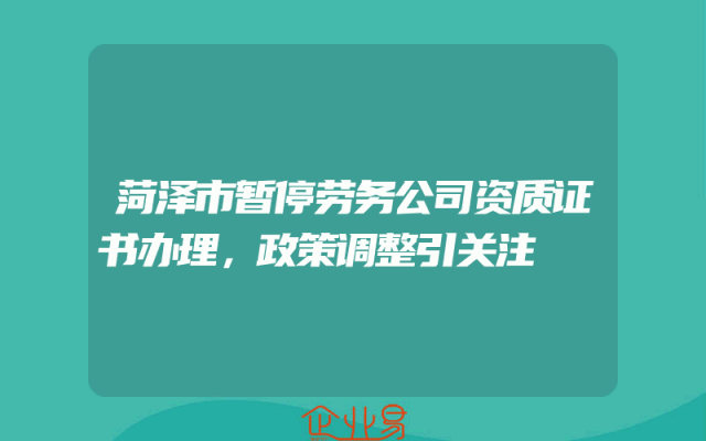- 菏泽市暂停劳务公司资质证书办理,政策调整引关注