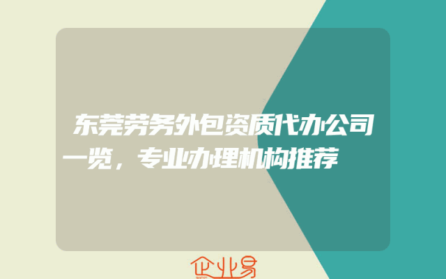 - 东莞劳务外包资质代办公司一览,专业办理机构推荐