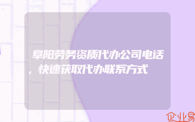 - 阜阳劳务资质代办公司电话,快速获取代办联系方式