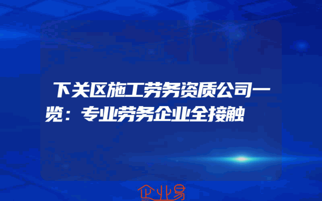 - 下关区施工劳务资质公司一览:专业劳务企业全接触