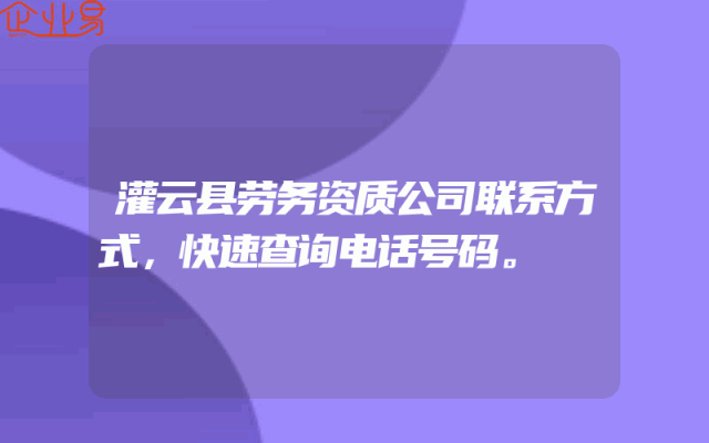 - 灌云县劳务资质公司联系方式,快速查询电话号码。