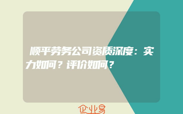- 顺平劳务公司资质深度:实力如何?评价如何?