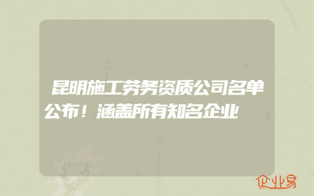 - 昆明施工劳务资质公司名单公布!涵盖所有知名企业