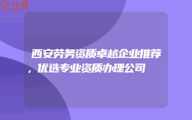 - 西安劳务资质卓越企业推荐:优选专业资质办理公司一、引言在日新月异的市场环境下,企业的蓬勃发展离不开各类资质的支持。特别是在劳务领域,资质的重要性更是不可忽视。位于历史古都西安,有许多专业的资质办理公司致力于为企业提供卓越的服务。本文将为您推
