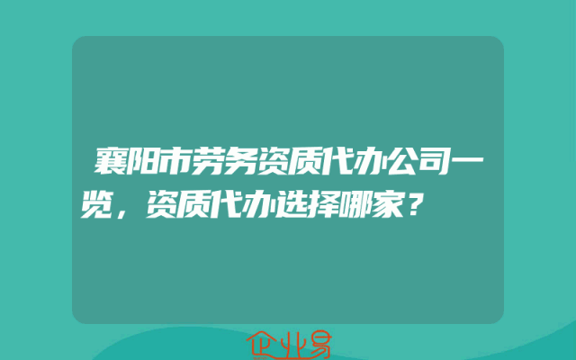 - 襄阳市劳务资质代办公司一览,资质代办选择哪家?