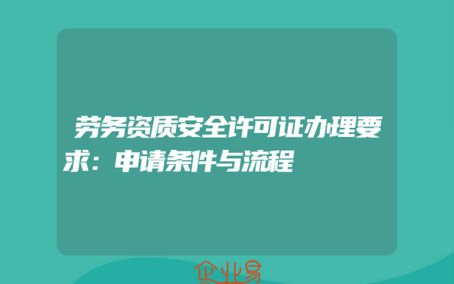 - 劳务资质安全许可证办理要求:申请条件与流程