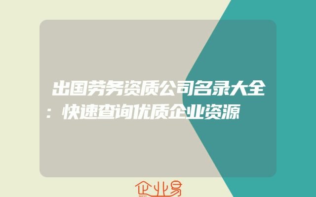 - 出国劳务资质公司名录大全:快速查询优质企业资源