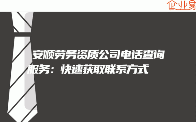 - 安顺劳务资质公司电话查询服务:快速获取联系方式
