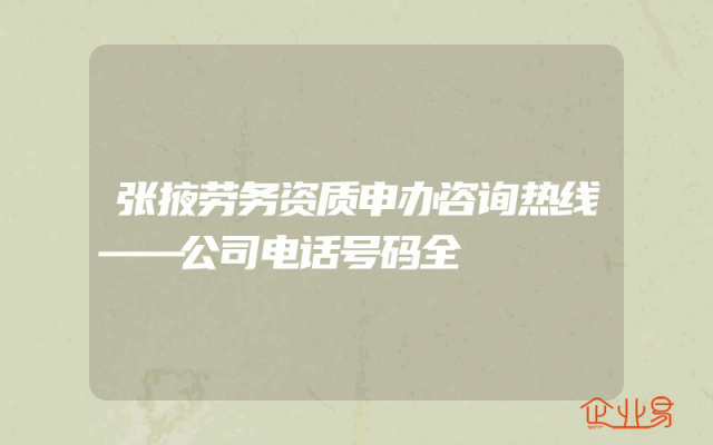- 张掖劳务资质申办咨询热线——公司电话号码全