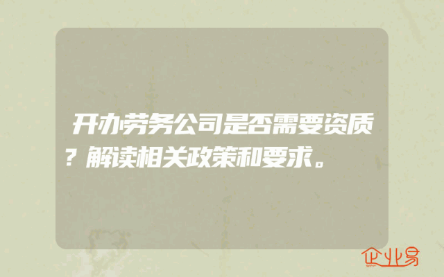 - 开办劳务公司是否需要资质?解读相关政策和要求。